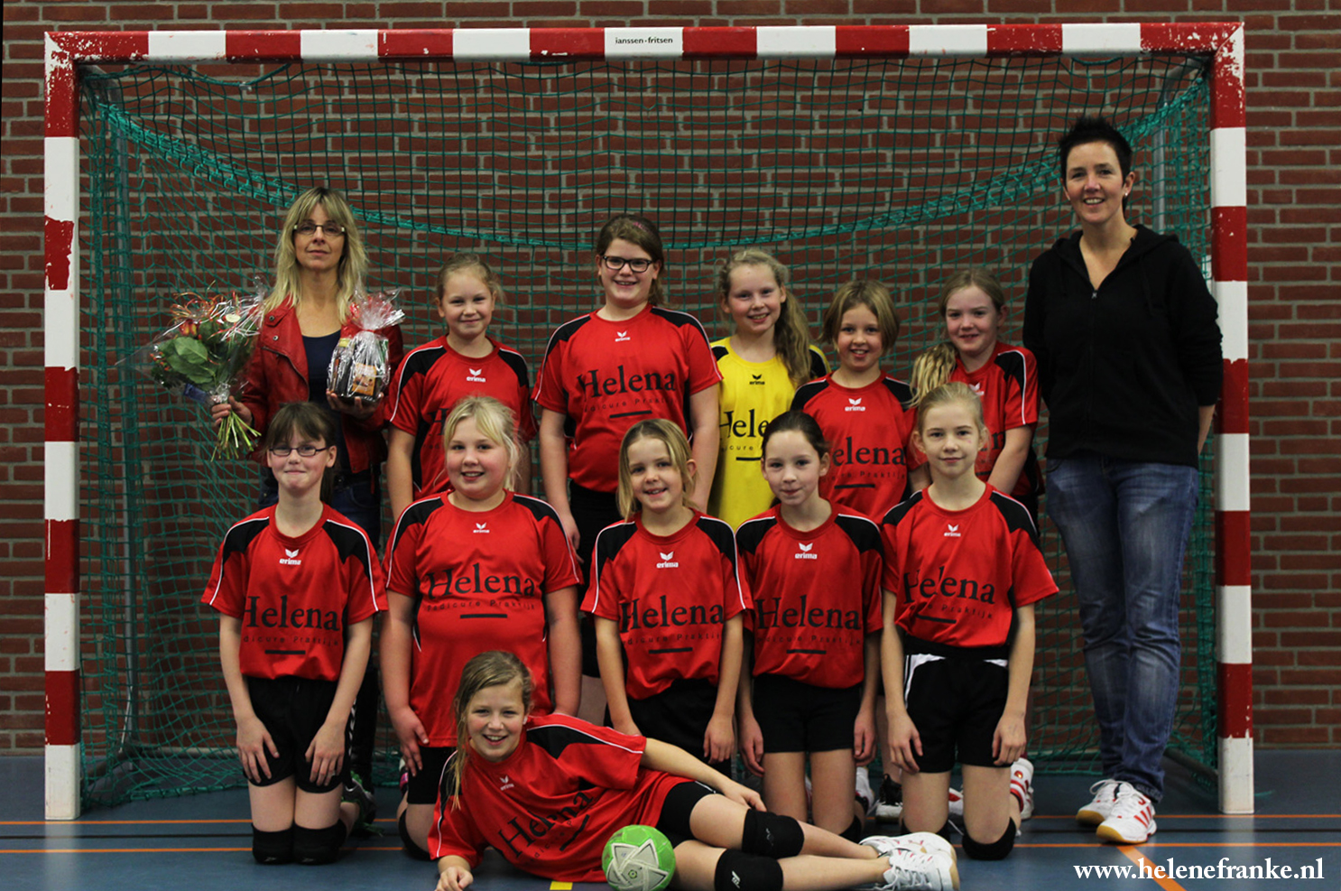 Het team speelde al enige tijd in de shirts maar werd nu samen met sponsor Helena Schalk op de foto gezet.